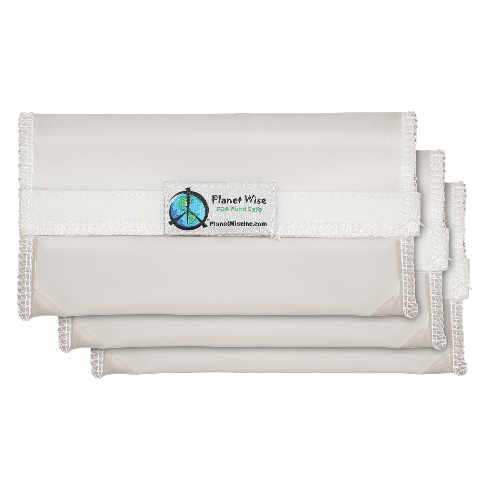 Planet Wise Snack Bags can be used to replace your disposable plastic baggies. They are made with FDA Food Safe Materials. This set includes 3 snack bags in clear EVA material.
